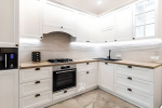 Знакомство с вашей компанией решили начать с кухни (нам вас рекомендовали соседи). Мы в семье любим все под старину, поэтому выбор пал на классический (прованского стиля) гарнитур с патиной. Умеренно светлый (я категорически против белого на кухне) и очень эффектный. Обошелся на удивление недорого. Особенно хочу отметить угловые подвесные шкафчики для буфета - со стеклянными красивыми дверцами. Для нас такое качество - показатель того, что наше следующее приобретение - мебель в гостиную, будем так же делать у вас. Примите от нас благодарность! Елизавета Анатольевна