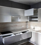 Отзыв пишу для тех, кто собирается заказывать кухню в этой компании. Две недели назад получила свою мебель, собрали на следующий день. Все так, как в проекте: классика + мой любимый темно-серый цвет, планировка на три стены. Добротно, ничего не болтается и не скрипит. Довольна всем, но есть одно НО. Будущие заказчики, прислушивайтесь к советам замерщика! У меня, в частности, была Ольга. Так вот, она - не только замерщик, но и дизайнер, пыталась меня убедить выбрать более светлые оттенки для фасадов. Кухня у меня действительно всегда мало освещена (живу на втором этаже, дом напротив и деревья заслоняют солнце). Но мне ТАК нравится серый цвет, что настояла на своём. И честно скажу, что жалею, что не послушала опытного человека. Придётся ставить дополнительное освещение, но это - моя вина. Качеством кухни очень довольна и рекомендую этот магазин! Елена